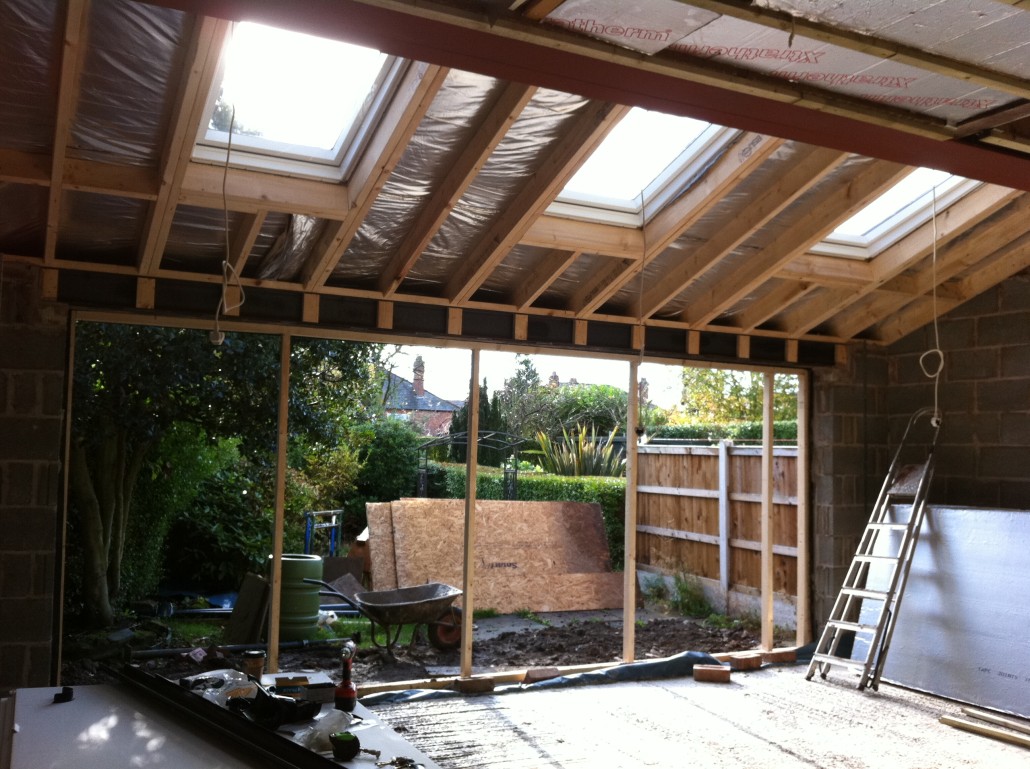 This Chester kitchen extension began by inserting two 6 metre steel beams so the wall below could be removed when the extension was built to create the kitchen/diner space. The single storey featured a vaulted ceiling to open up the space, while skylights were installed to allow more natural light into the space. A bi-folding door which opened onto the rear patio, meant that more than a little fresh air could find its way into the space in warmer months, although the doors are insulated for an incoming cold snap too.
